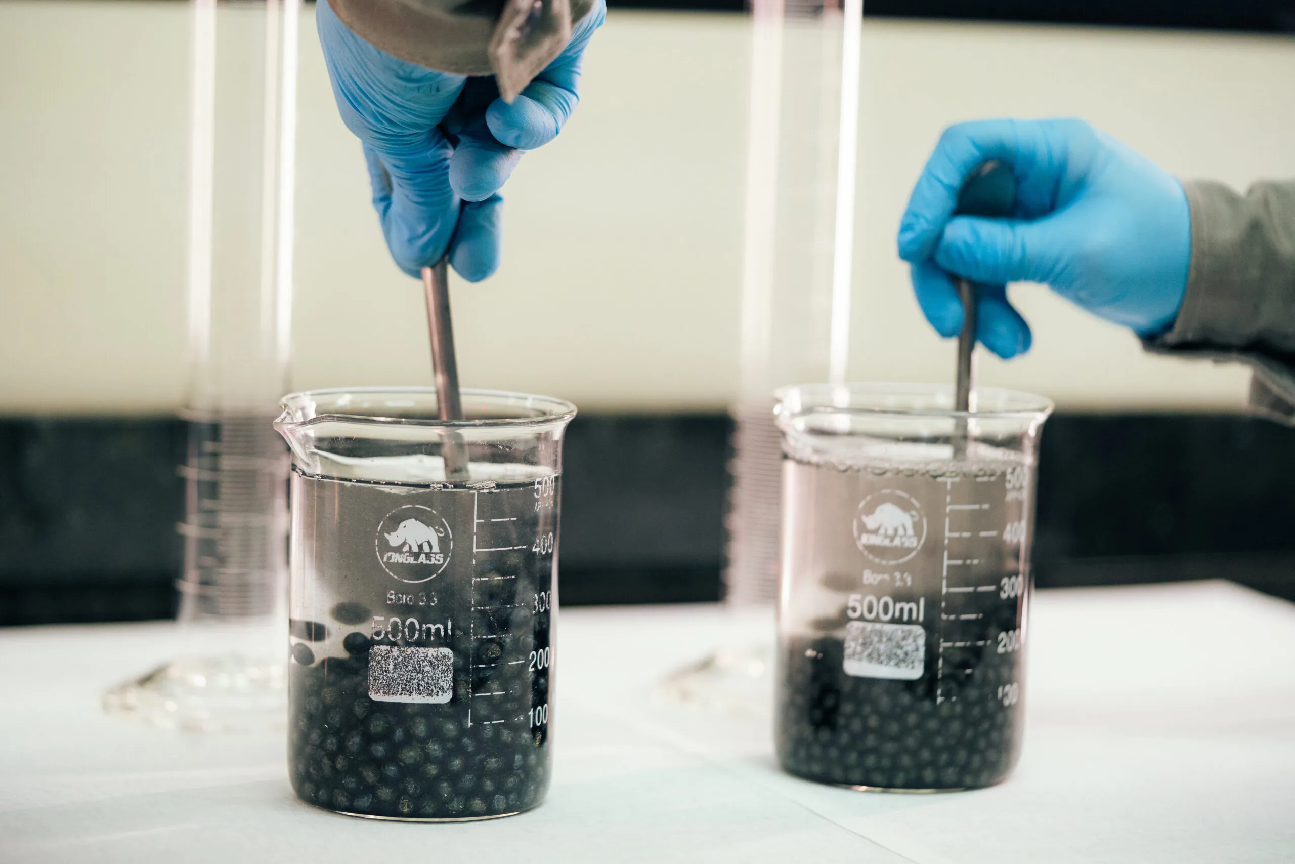 São realizados testes de compatibilidade estática ou dinâmica e capacidade de ressuspensão de caldas formadas com diferentes produtos. O teste foi desenvolvido baseado na metodologia de norma ABNT adaptada para caldas de tratamento de sementes. A estabilidade de caldas e a determinação de seu pH são avaliadas imediatamente e 24 horas após seu preparo. Aliado a tudo isso, verifica-se se há formação de grumos, sementes agregadas etc. Determina-se a densidade e viscosidade das misturas, pois estes aspectos são fundamentais para a regulagem assertiva das doses de aplicação, bem como especificação de bombas dosadoras. Atualmente, são aplicados entre 4 e 9 diferentes produtos sobre as sementes. Eles são aplicados a partir de tanques separados ou em calda única. A formação de caldas apresenta desafios como a compatibilidade físico-química entre os produtos que a compõem. É fundamental testarmos a compatibilidade antes de formar a calda para evitarmos erros de dosagem e aplicação. Assim, a calda deve ter boa miscibilidade, estabilidade, suspensibilidade e sinergismo, sob pena de prejudicar e, em alguns casos, inviabilizar a aplicação.